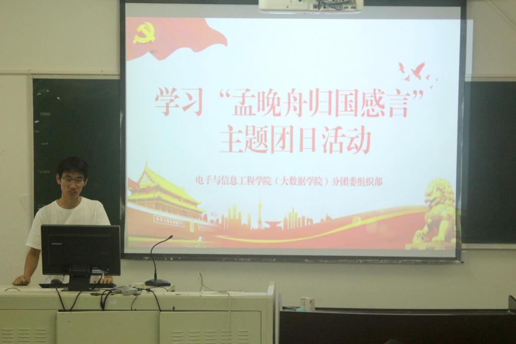 在班级团日活动中,各班团支部通过观看孟晚舟女士回国视频,感受“孟晚舟归国事件”的艰辛历程,与同学们共同学习“孟晚舟归国感言”,展现一系列爱国主义教育的内容。舟虽晚,终归航,祖国的灯塔,一直为你点亮,孟晚舟女士,欢迎回家!学习结束后,班级团员们分别交流了心得体会。