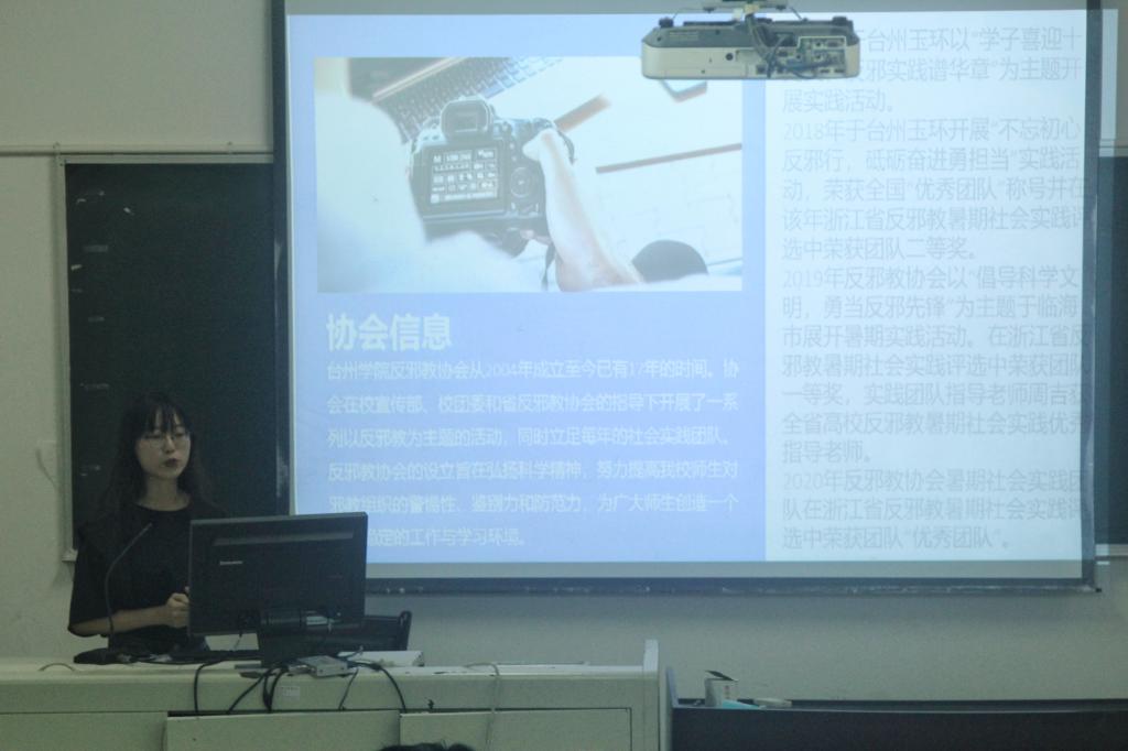 会上,反邪会队长郑雨薇分享暑期实践中的所见所闻、所感所获,也向新生们全方位展示了反邪教暑期实践团队的丰硕成果。景区环卫队长虞辰洋从社会实践的初衷和对个人的提升等方面,深入分析实践背后的深刻意义,并以他所带队的景区环卫活动为例,分享其团队在实践中的收获。“阳光家教”暑期社会实践队队长叶宇航,详细介绍了“阳光家教”暑期实践活动的流程,分享了队员们在疫情之下,陪伴孩子们学习中收获的快乐和感动,以及自身教学能力的提升。