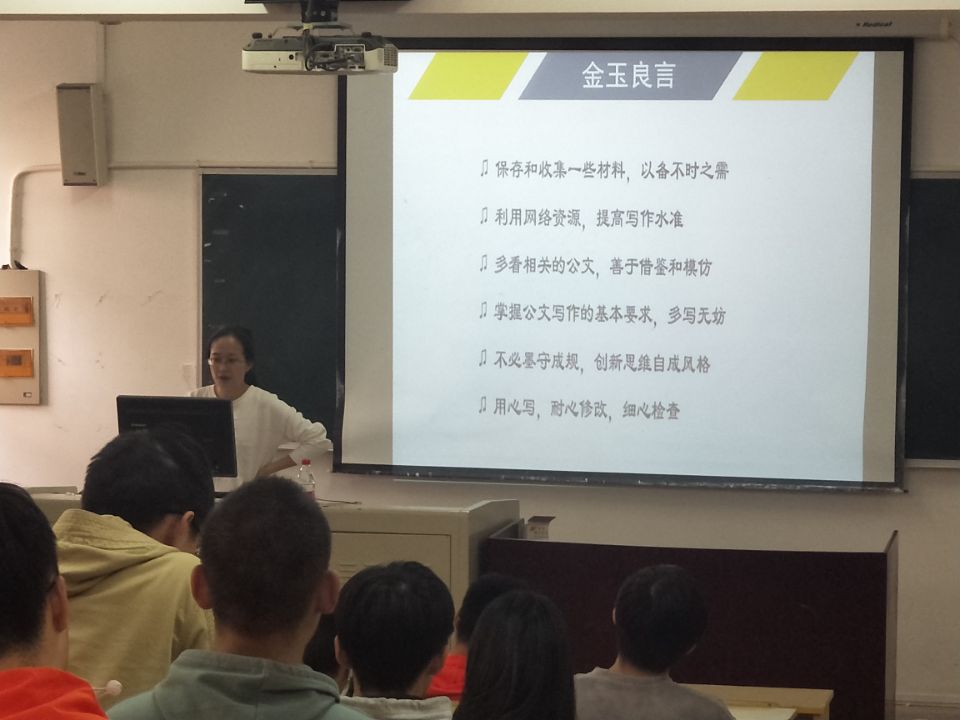 会后,陈佳阳送给每位学生干部六条“金玉良言”:一、保存材料,以备不时之需;二、利用网络资源,提升自己;三、模仿借鉴,多多学习;四、关注基本要求,多练;五、别出心裁,独具风格;六、用心修改、耐心检查。通过上述温馨提示,希望同学们更好地掌握公文的写作技巧,高效率、高质量地完成日后的公文撰写任务。