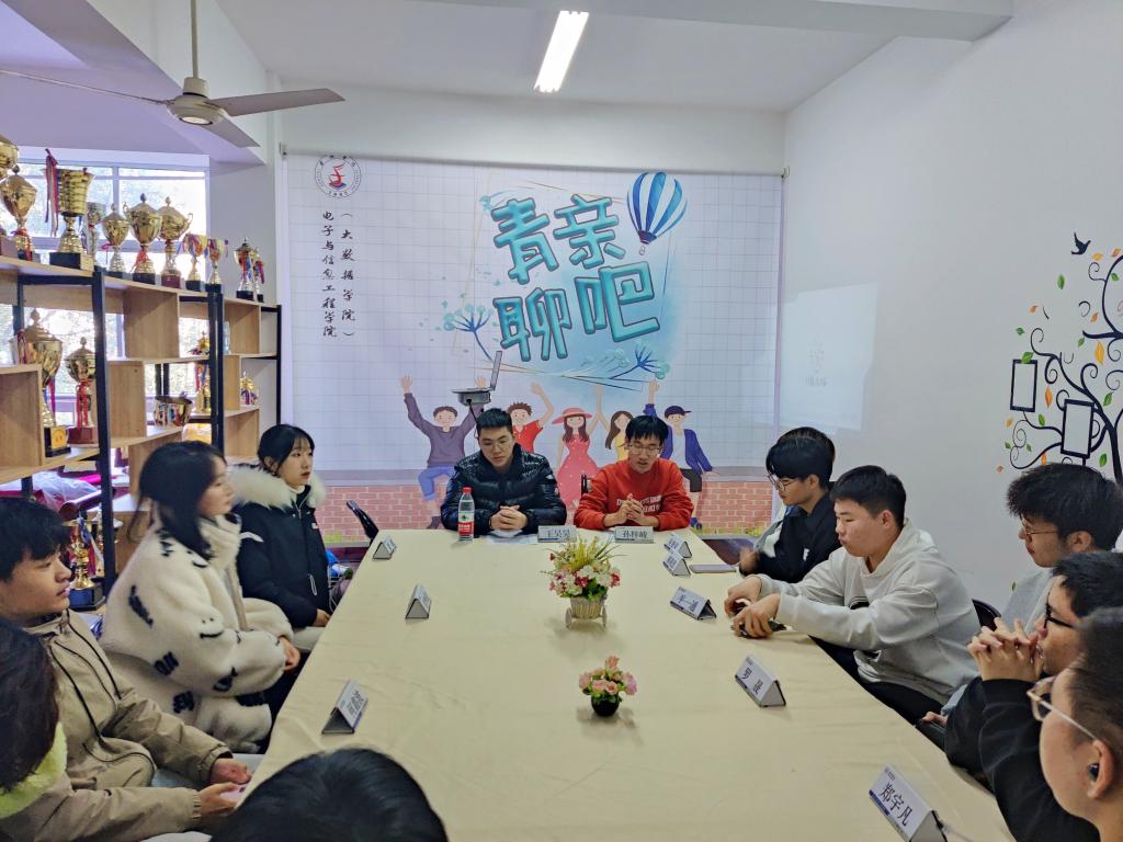 为进一步提升学生干部对班级管理的水平,创新班级管理办法,12月3日,电信学院举办了第40期青亲聊吧,特邀校级十佳优良学风班--19级数学1班班长王昊昊开展经验交流,各班班长、团支书参加了本次学习交流活动。