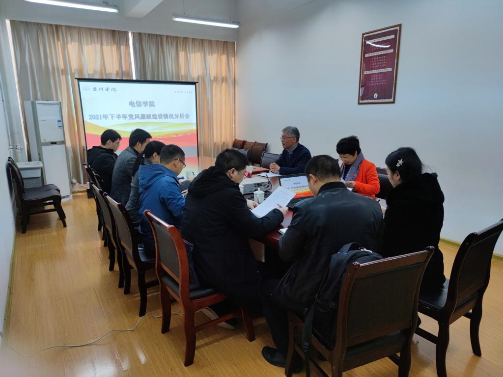 12月22日,电信学院召开2021年下半年党风廉政建设情况分析会。校党委委员、组织部长杨健国、计划财务处处长杨姗姗应邀出席会议并指导;学院班子成员及党委委员、支部书记、系室主任参加。学院党委书记王奎东主持会议。