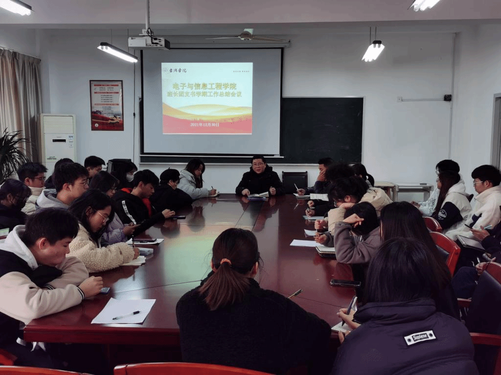 临近学期期末,为总结和反思本学期的班级工作情况,推动下一年度班风、学风建设长久发展,电信学院于12月30日召开班委期末工作总结会议。学院党委副书记冯荣出席并主持会议,各年级辅导员,各班班长、团支书参加。