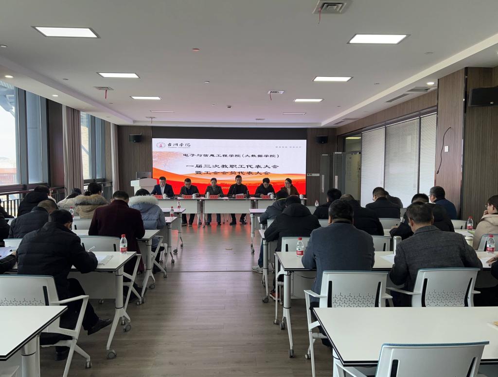 为进一步发扬民主,集思广益,推进学院“十四五”事业发展,1月6日,电子与信息工程学院(大数据学院)隆重召开一届三次教职工代表大会暨工会会员代表大会,学院教职工正式代表共38人参加会议。学院党委书记王奎东、工会主席冯荣分别主持预备会议和正式会议。