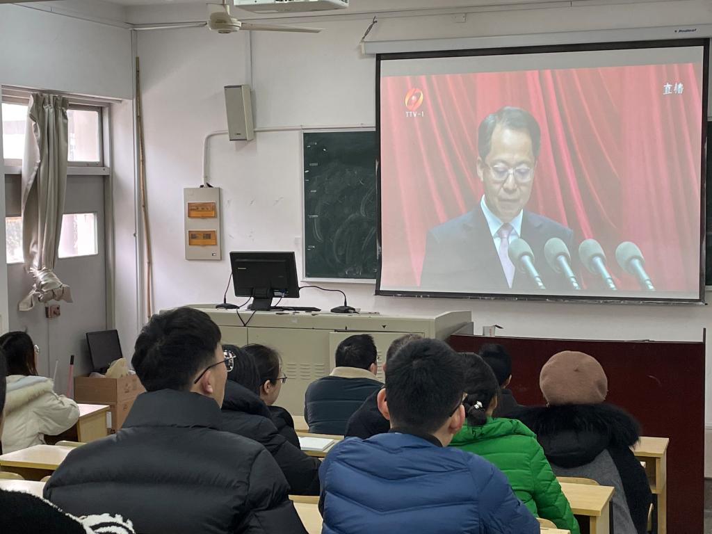 2月23日上午9时,中国共产党台州市第六届代表大会第一次会议隆重开幕。为及时了解大会现况、认真学习大会精神,电信学院分校区组织师生党员观看大会直播,学院领导班子与40多名师生党员一起观看开幕式直播,认真聆听市委书记李跃旗代表中国共产党台州市第五届委员会向大会作的工作报告。