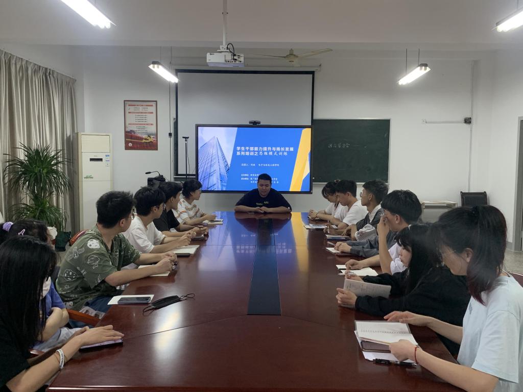 6月2日,为提升广大学生干部的公务礼仪素养,“扬长心路”辅导员工作室组织举办了学生干部能力提升与扬长发展系列活动之第四讲“思维创新”讲座。扬长心路辅导员工作室骨干成员、电信学院学生会指导老师、辅导员沈迪开展专题分享交流,学院各学生组织主要学生干部参加。