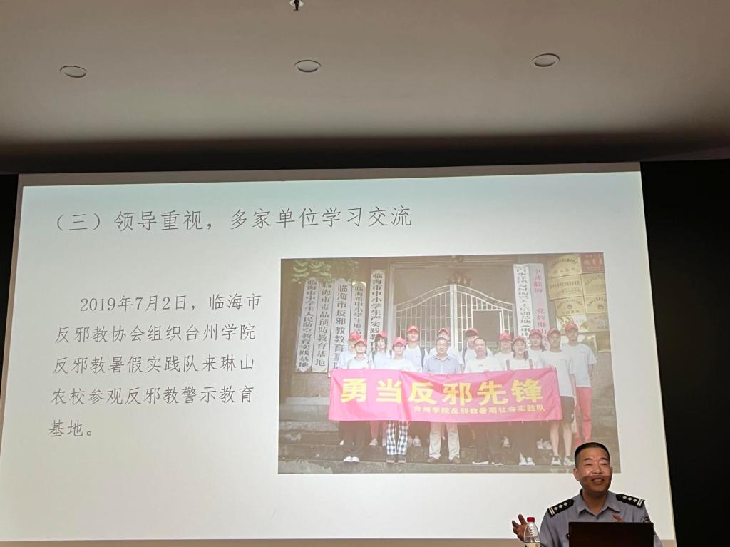 在临海市新时代文明实践中心,临海市委政法委邓其东委员结合具体个案分析就当前临海市反邪的形势、任务做了一场精彩的辅导报告,让广大学生了解了整个社会面各条线在反邪方面所做的工作,进一步明确了今后反邪宣传实践的方向。临海市反邪教协会副理事长周贤正重点就我校反邪暑期社会实践队所关心的临海市反邪工作的成效、反邪阵地化建设、反邪工作面临的新局面等四个方面的问题做了详细的解读,并为在座的听众一一解答了反邪方面存在的疑惑。