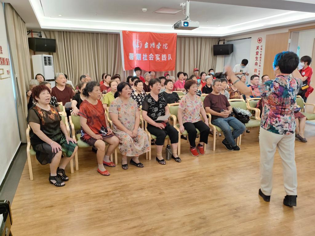 “温暖之家”的老人们与社区工作人员合唱《没有共产党就没有新中国》和临海古城街道鹿城社区的社区之歌《全心全意》,真挚地向反邪教宣传实践队表示热烈欢迎。