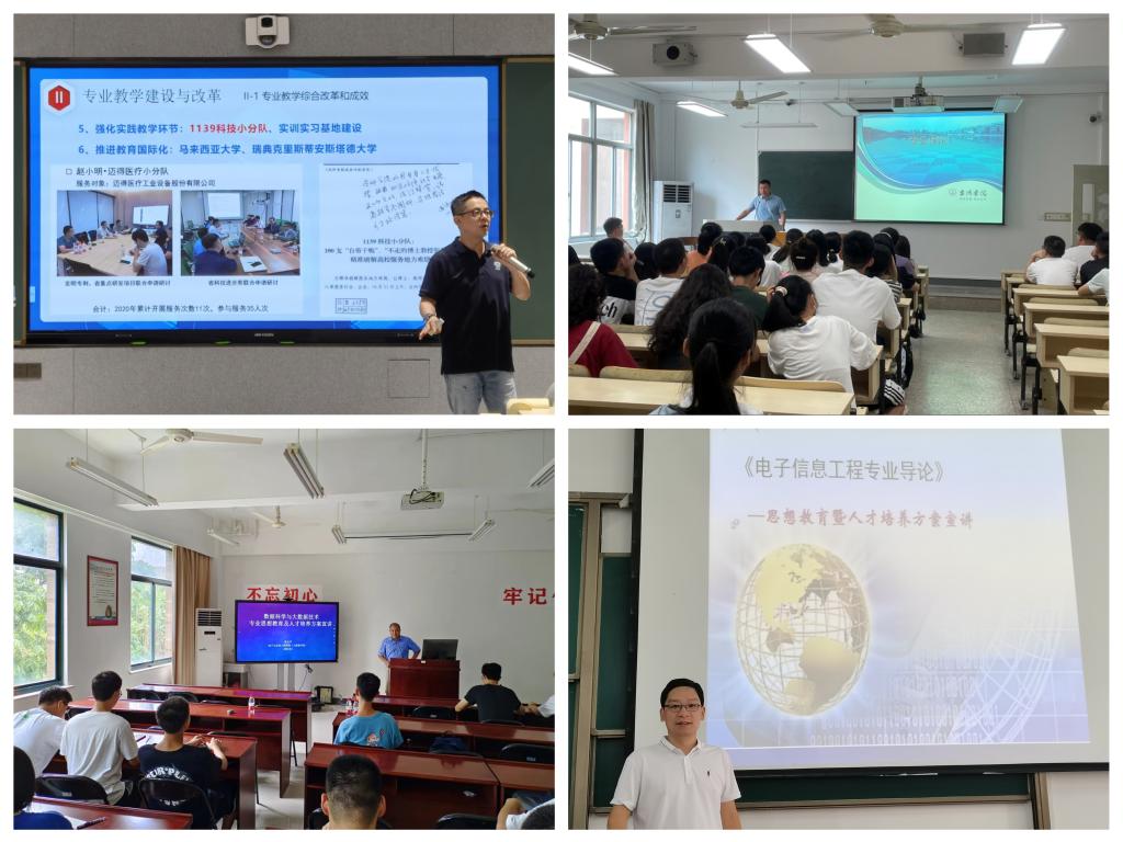 秉持着“厚德、求是、健行、致远”的院训,各专业系主任及专业负责人细致介绍专业思想和培养方案。数据科学与大数据技术由郭文平教授主讲,他从专业的特色、人才的优势、培养的计划、行业的发展等等详细地向新生介绍了专业的情况,鼓励学生锚定学习初心,不断锐意进取,争做时代的弄潮儿。计算机专业系主任陈盈主要从培养目标、毕业要求、培养计划等方面对人才培养方案进行宣讲,他指出,本专业将培育勇于担当、善于学习、敢于超越和拥有较强的实践能力的计算机专业人才。数学专业系主任夏志乐首先为同学们介绍在大学四年应该学习什么、做些什么,并让同学们尽早制定自己的目标,形成对未来的规划。随后,夏志乐希望同学们通过了解社会对毕业生的素质、知识、能力等的需求,能提前做好职业生涯规划。电子专业系主任汪洋指出本专业应培养出能掌握专业能力、为社会各层次提供帮助的高素质复合型人才。电子工程专业适应了国家数字化改革的技术人才需求,为应对这种需求,学院设计了对应的课程,增强同学们就业竞争能力。