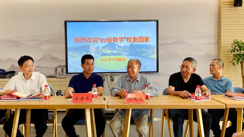 曾任职过台州师专数学系主任、教务处处长、台州中学校长,82数学原班主任张庆尧老师激动万分,特意从上海赶过来与同学们相聚。会上,张老师简要回顾了自己的工作历程,希望学生们坚持学习继续前行,同时殷切希望同学们关注母校发展。
