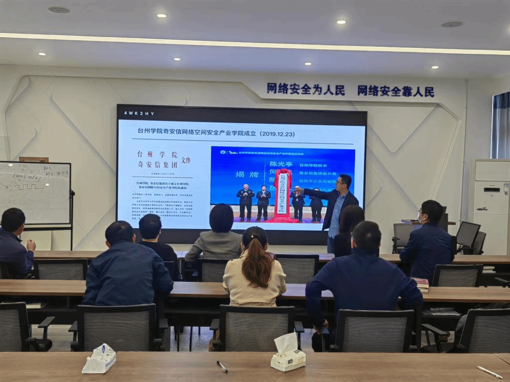 10月30日上午,宁波工程学院网络空间安全学院院长鲍淑娣,温州职业技术学院人工智能学院副院长吴淑英,绍兴文理学院计算机系副主任屠昂燕等省计算机教育与应用学会教育委员会成员在电信学院副院长、网络空间安全产业学院副院长张石清,电信学院计算机系主任、网络空间安全产业学院副院长陈盈,奇安信集团浙江区总经理、网络空间安全产业学院副院长林尚晓等陪同下,参观了我校网络空间安全产业学院。