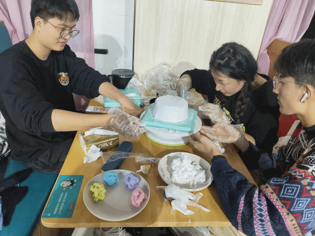 为丰富大学生课余生活,提高学生动手创造能力,增进彼此间的沟通交流。电信学院于11月19日晚在临海校区食堂三楼举办主题为“美时美刻,一决‘糕’下”的蛋糕DIY活动,为同学们沉浸式地上了一场生动的劳动教育课。