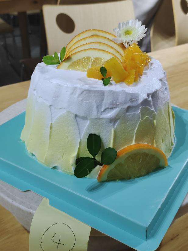 比赛紧锣密鼓地进行着,在短短的三十分钟内,各组参赛选手需要完成切蛋糕胚、涂奶油、材料点缀等一系列操作。在蛋糕制作过程中,所有参赛人员都全身心地沉浸其中,现场欢声不断,笑语连连。