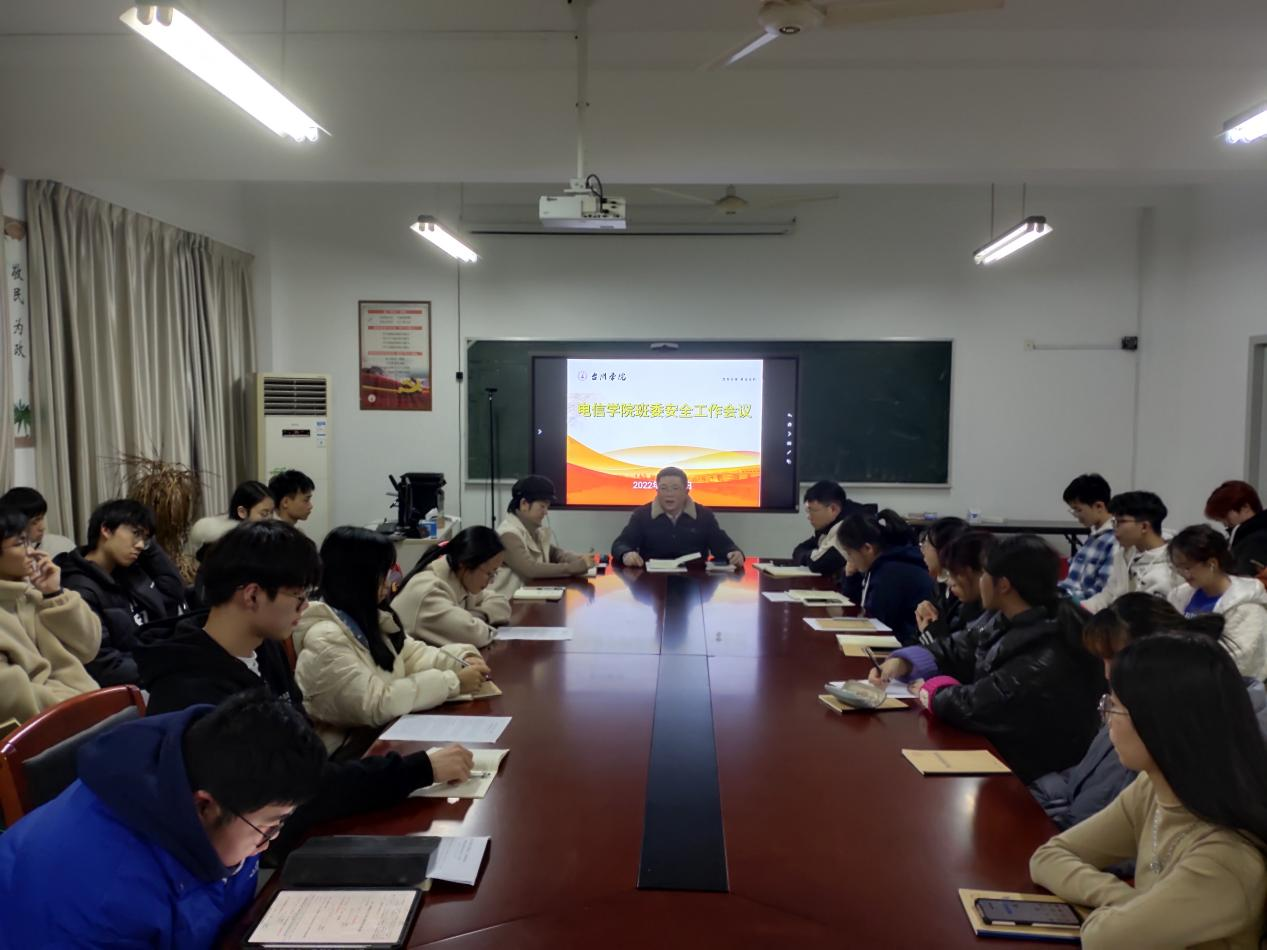 为进一步做好近期学院学生安全稳定工作,12月1日晚,电信学院召开班委例会暨安全工作专题会议,学院党委副书记冯荣,各年级辅导员及各班班长、团支书参加会议。