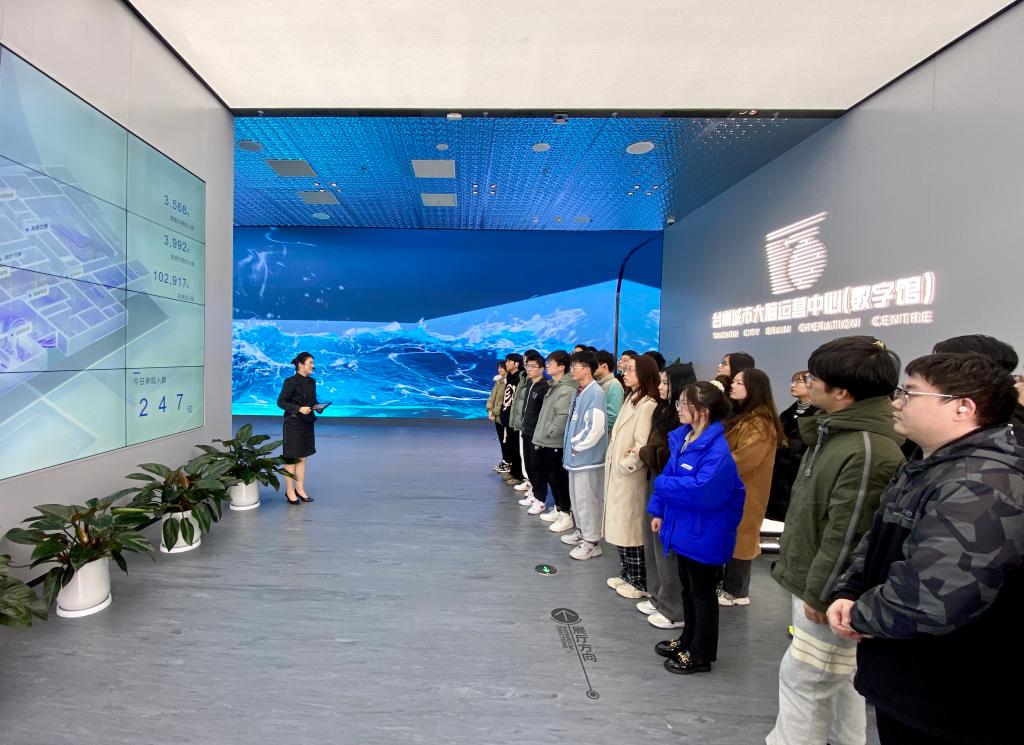 同学们通过运营中心讲解员带领与讲解下,一一参观体验了各区域城市数字化建设的场景展现,都真切地感受到现代科技对智能城市的现实应用,对未来能去从事的工作有了一定的启发。