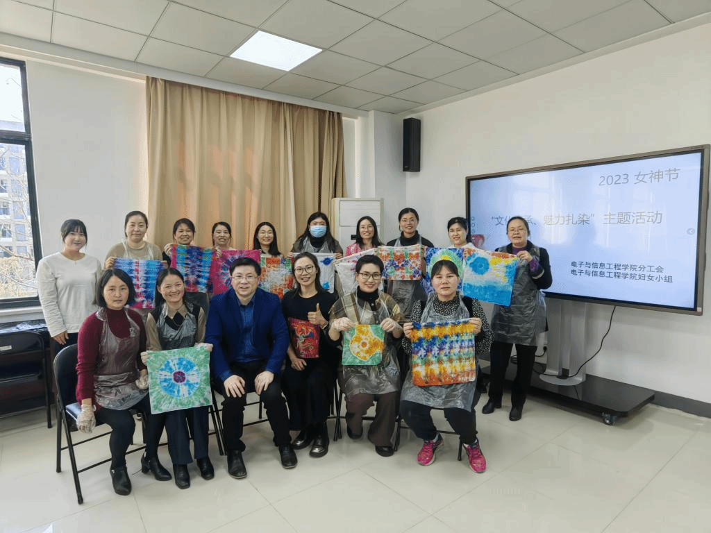 又是一年春暖花开、春意盎然的日子,3月8日下午,电信学院“文化传承、魅力扎染”、健步走等活动分别在椒江和临海两地举行,全体女教工欢聚一堂,共同庆祝第113个“三八”国际劳动妇女节。学院党委副书记、工会主席冯荣到场指导并送上节日祝福。