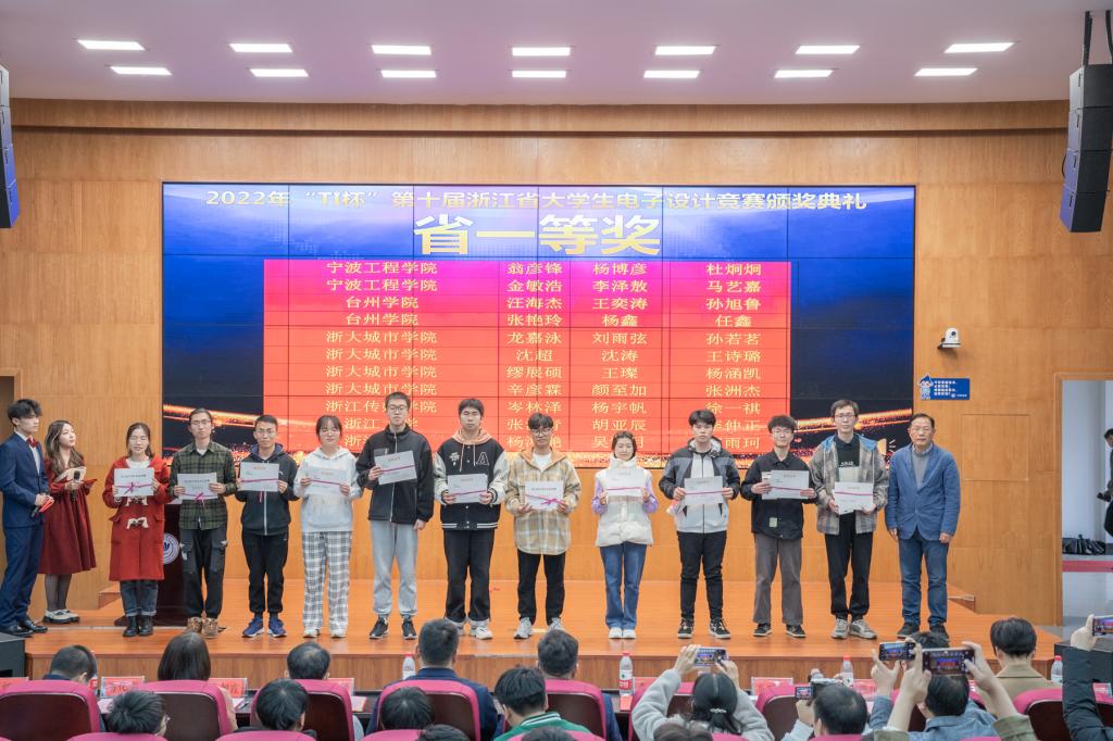 3月17日,2022年“TI”杯第十届浙江省大学生电子设计竞赛总结暨颁奖大会在杭州电子科技大学召开。我校电信学院组织电信和智能制造两个学院学生参赛并取得优异成绩,其中省一等奖2项、二等奖10项,三等奖10项。同时,我校被赛区组委会评为“优秀组织奖”(全省共5个名额),这也是我校继2018年、2020年后第三次获得此项荣誉。电信学院陈爱华老师被评为“优秀指导教师”(全省共15个名额)。