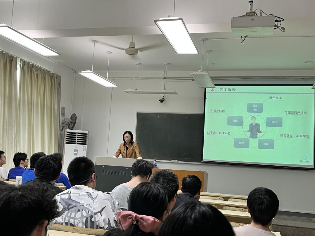 2023年4月21日下午,临海校区电信学院计算机科学与技术专业“大学生职业规划与就业指导Π”课堂迎来了一位特殊的嘉宾,她就是来自杭州指针信息技术有限公司,有着十多年人才服务从业经验的高级研究员、ICF认证纯净教练惠鑫。惠鑫为学生们带了一堂《面试技巧与职场礼仪》的专题授课。