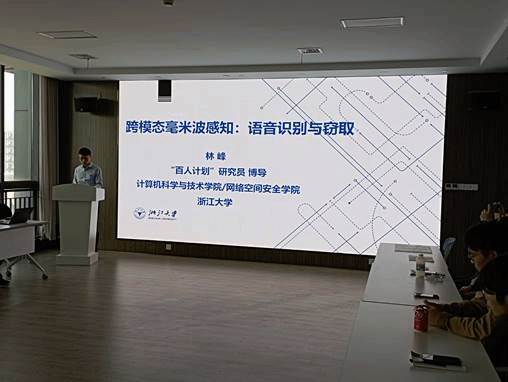 林峰研究员在活动中介绍了“基于毫米波跨模态感知的语音识别与窃取”研究现状与成果,拓展了师生的知识面。林峰研究员本科毕业于浙江大学,在美国田纳西理工大学获博士学位。曾任美国科罗拉多大学丹佛分校助理教授,纽约州立大学布法罗分校研究科学家。主要研究方向为物联网安全,智能与移动传感,智能网联车安全,生物识别身份认证,人工智能等。带领学生获中国研究生创“芯”大赛全国一等奖,中国高校计算机大赛网络技术挑战赛总决赛一等奖,和优秀指导教师奖。