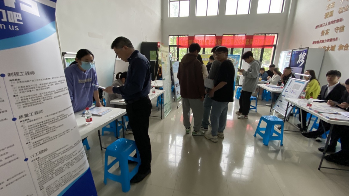 为进一步做好毕业生就业服务工作,4月29日,电信学院在椒江校区4号教学楼门厅组织了电子系2023届毕业生专场招聘会暨2024届学生实习双选会。本次双选会共有电子系104名2023届毕业生、66名2024届学生及部分其他专业学生参加,15家招聘单位累计收到简历近400份。电信学院党委副书记冯荣、党委委员董立达、电子系系主任汪洋及负责就业工作辅导员郑行等到现场组织双选会。