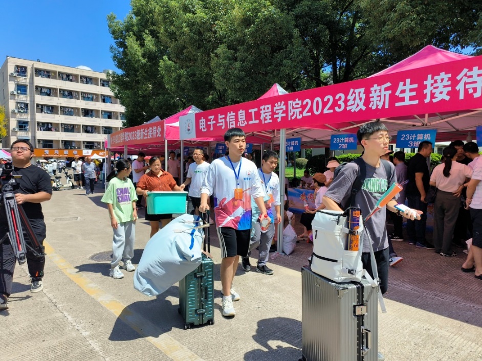 “欢迎新同学”“你好,电信萌新”,醒目的迎新横幅标语、鲜明的导引指示牌,到处洋溢着浓厚而热烈的迎新氛围。为保障广大新生顺利开启崭新大学生活,电信学院党政领导在迎新现场指导工作,各部门积极动员、通力合作,为新生提供方便迅捷、温暖贴心的报到服务。