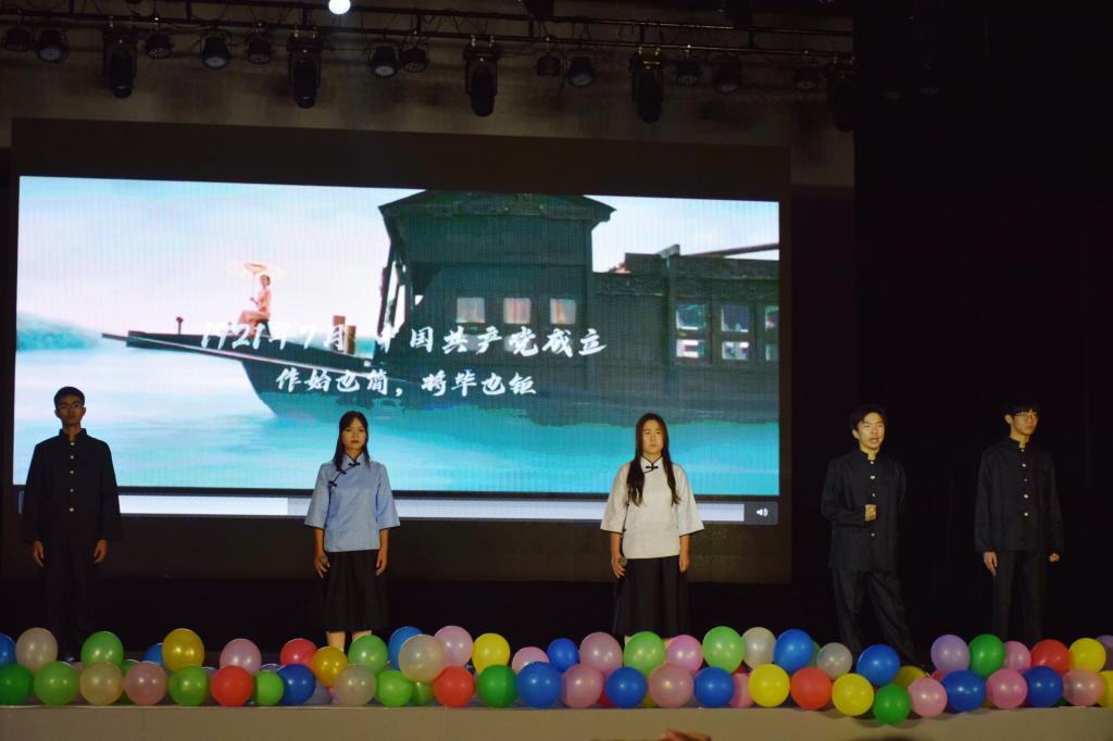 暮色渐起,华灯初上,随着暖场视频的预热,本次迎新晚会拉开帷幕。TY街舞社的舞者以《Beat It》惊艳全场,情景剧、舞蹈、唱歌轮番上演,节目精彩纷呈,同学们青春洋溢,活力四射。节目最后,由党员先锋队带来的《觉醒》、《恰同学少年》和《歌唱祖国》以朗诵、情景剧和合唱的形式呈现。朗诵铿锵有力、字正腔圆;歌唱祖国的歌声激扬澎湃、余音绕梁,传递着激荡人心的力量,让大家感受到了觉醒时代激扬澎湃的青春力量。