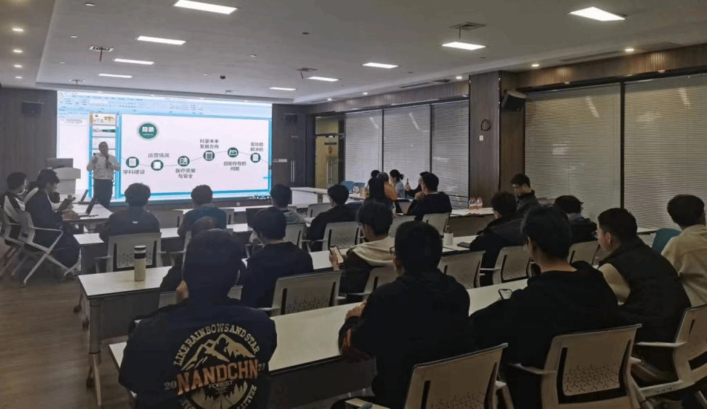 郭文平副院长对台州市第一人民医院在医疗科研领域所取得的成果表示赞赏,并简要介绍了电信学院医疗大数据团队的重点研究方向和近期的研究成果。随后与会研究生报告了文献阅读和近期科研进展情况。最后张石清院长作总结发言,他指出,本次交流会的成功举办,标志着台州市第一人民医院与电信学院的合作迈上新台阶,也为我院相关研究团队和研究生提供了一个近距离了解医疗机构实际需求的机会,有助于拓宽视野、激发创新思维,为进一步开展医工信交叉研究提供有益的启示。
