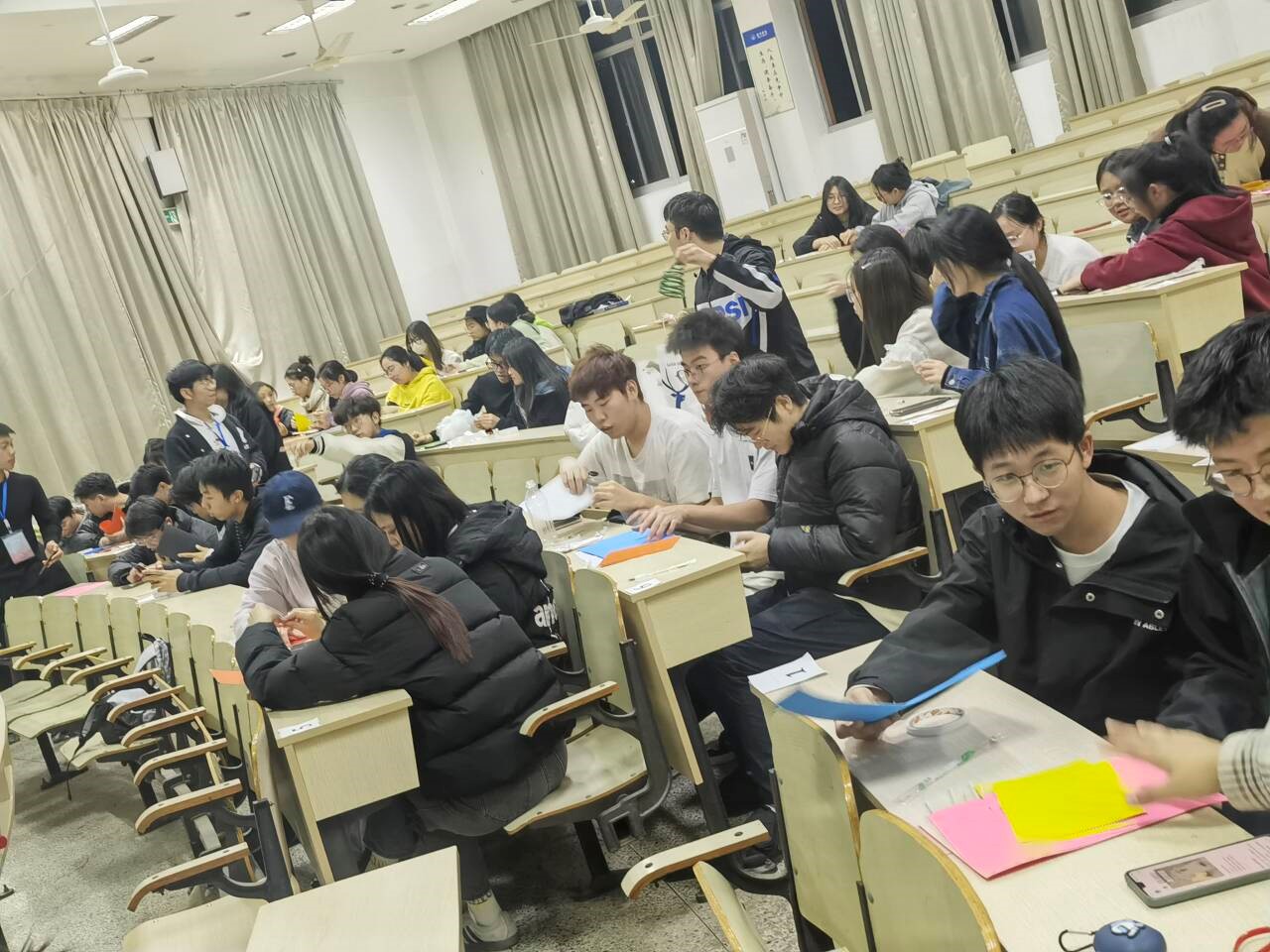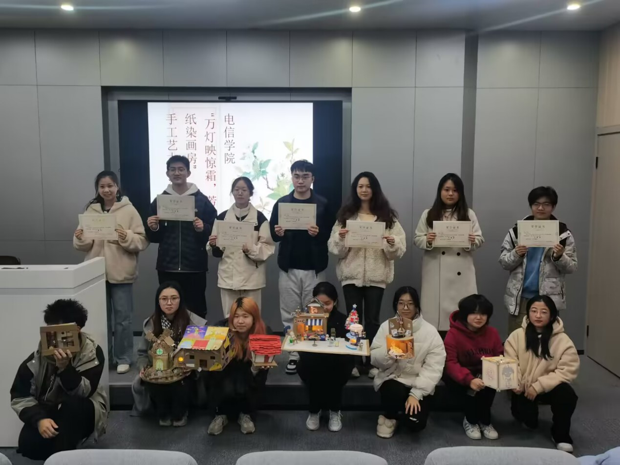 12月3日晚,电信学院“万灯映惊霜,芳纸染画房”手工艺大赛圆满举行。本次比赛共有19个参赛小组报名参与,辅导员和学院公寓自律委员会干部作为评委进行打分。