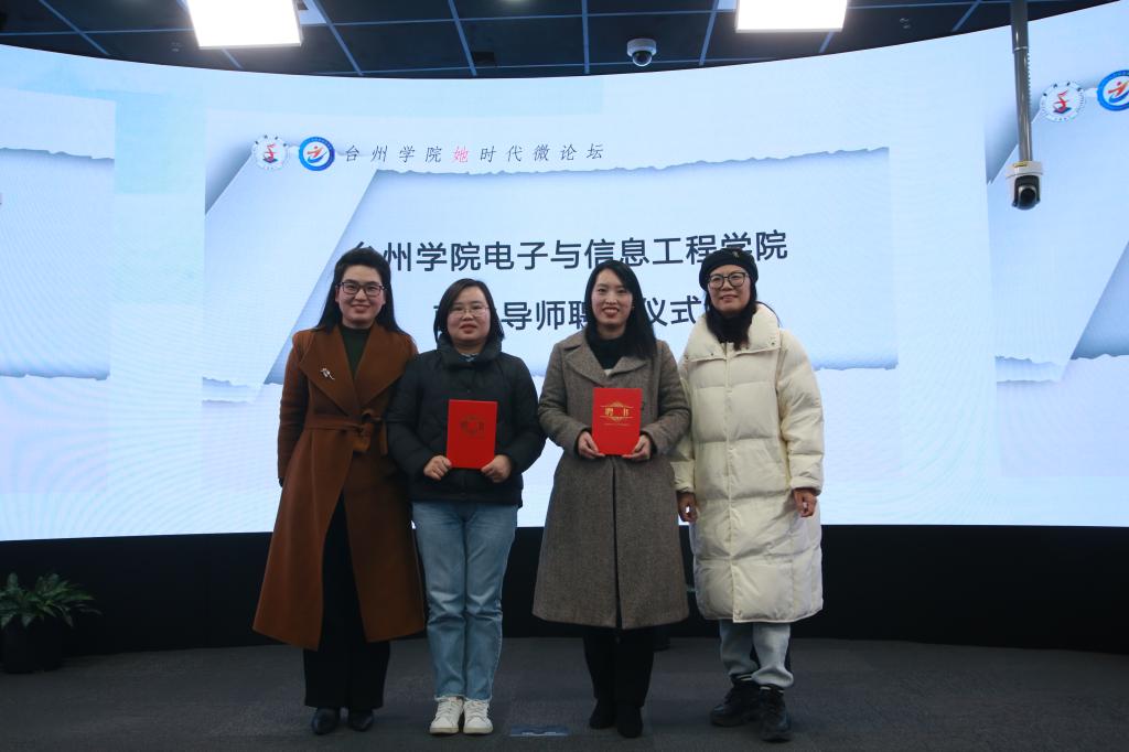 最后,举行了电子与信息工程学院就业导师聘任仪式,王爱琴、董立达为朱玲、伍琳洁颁发聘书,聘请两位优秀女性作为电子与信息工程学院就业导师。