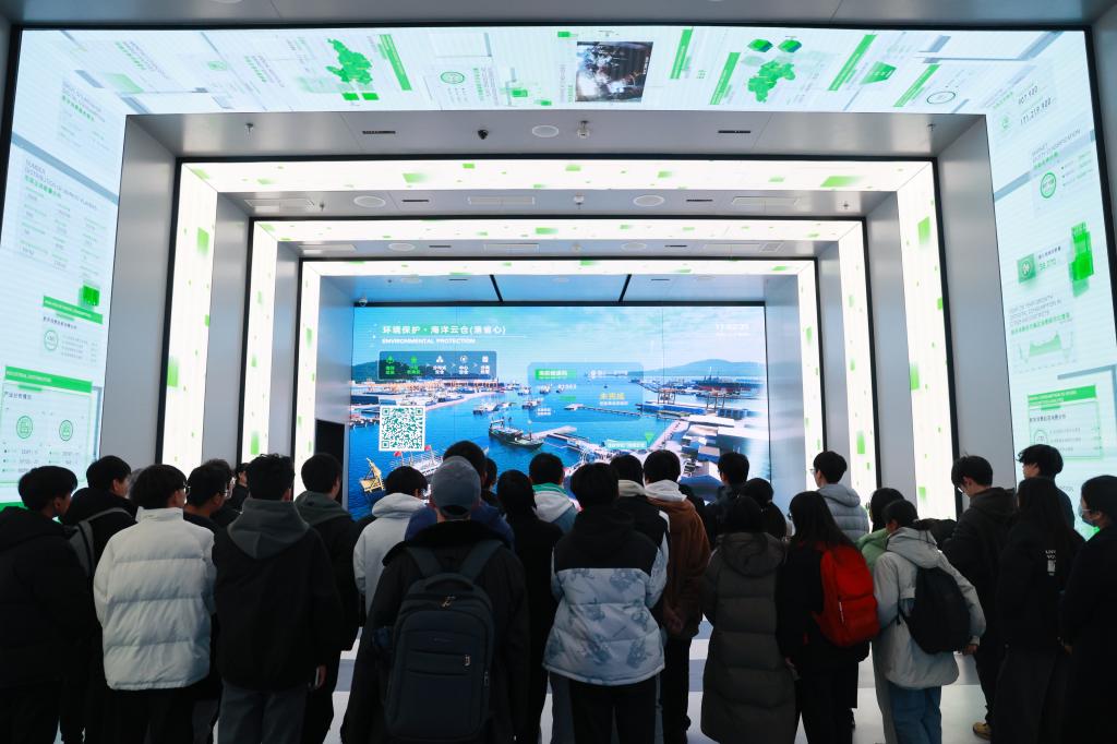 接着,同学们来到了“海洋生态环境保护”展区,台州市市府办副秘书长陈友增给同学们带来了生动的一课,陈先生给同学讲解了“海洋云仓(渔省心)”的历史由来、运营原理以及对于全球海洋生态环境保护的重大意义,同学们深刻地领悟到了保护海洋生态环境对于人类后代的重要性,运用大数据技术可有效维护良好海洋生态,这是数字技术给人类带来的一大福音,青年一代大学生是祖国的未来,未来的技术更迭和创新需要大学生的参与和智慧。