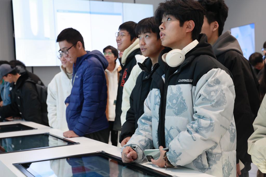 同学们在讲解员的带领下,通过翻涌着蓝色“时代浪潮”的序厅大屏,走进虚拟机房,在充满科技感的虚拟投影空间中,尽情地感知着智慧密码。城管智联、智能政务、智慧交通等技术成果让现场同学们应接不暇,防汛防台与船港通、健康一卡通、台州好文旅、市场监管、教育直通车、工业互联网和小微金融与经济运行监测等让同学们惊叹于人工智能带给人类的极大便利。