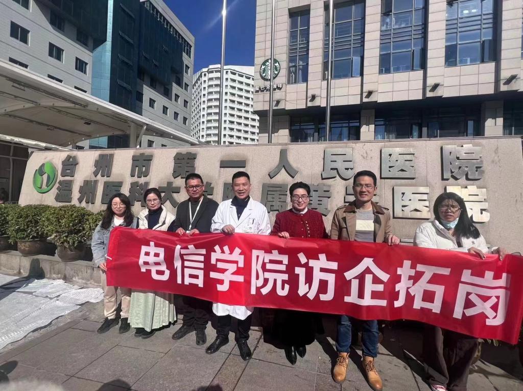 为加强产教融合,推进校企合作,1月18日,电信学院党委副书记董立达一行赴台州市第一人民医院开展调研交流活动,台州市第一人民医院相关处室负责人参加。