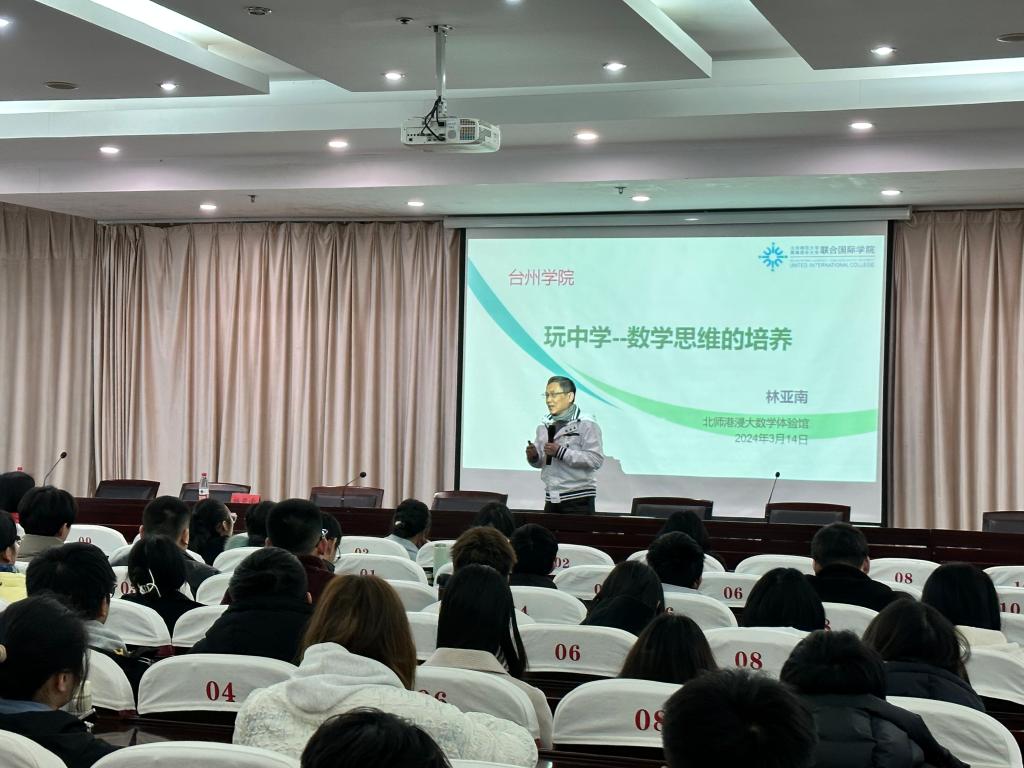为培养学生用数学眼光观察世界的能力,我院于3月14日第五个“国际数学日”举办台州学院第二届数学文化节开幕式,并特别邀请厦门大学数学科学学院林亚南教授做讲座,学院副院长鲁大前、数学系部分师生参加,共同探讨“玩与学—数学思维的培养”。