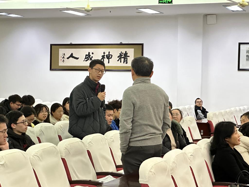 随后林亚南教授带来了一场生动有趣的讲座。林教授先从小游戏“如何用三块积木拼成E”入手,激发学生兴趣。后以多边形平铺引导同学们从生活实例深入思考数学问题。同时,林教授指出数学教育的目标是会用数学的眼光观察现实世界,会用数学的思维思考现实世界,会用数学的语言表达现实世界。讲座尾声,许多同学趁着此次宝贵机会,积极地与林教授互动探讨,现场氛围热烈且有趣。
