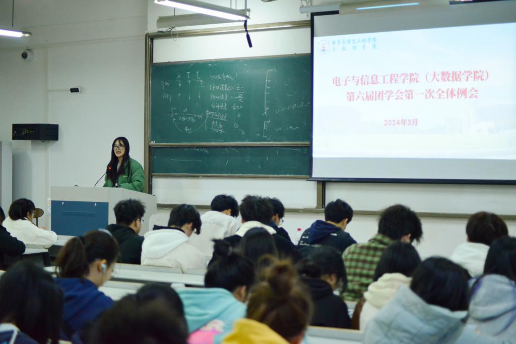 新学期,新气象,为进一步提高团学干部的思想政治水平和工作能力,更好服务学院学生工作,3月24日晚,电信学院第六届团学会第一次全体例会召开,分团委书记代雅倩和全体团学干部参会。