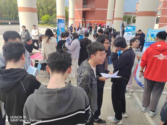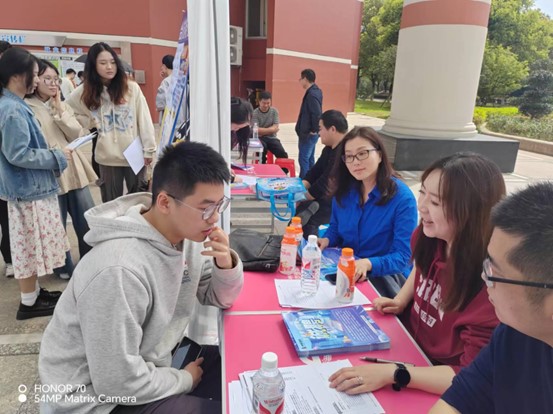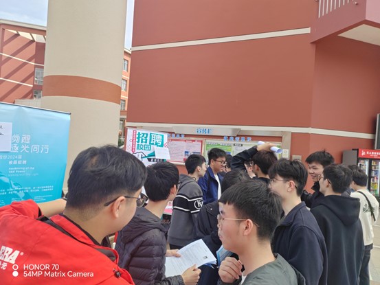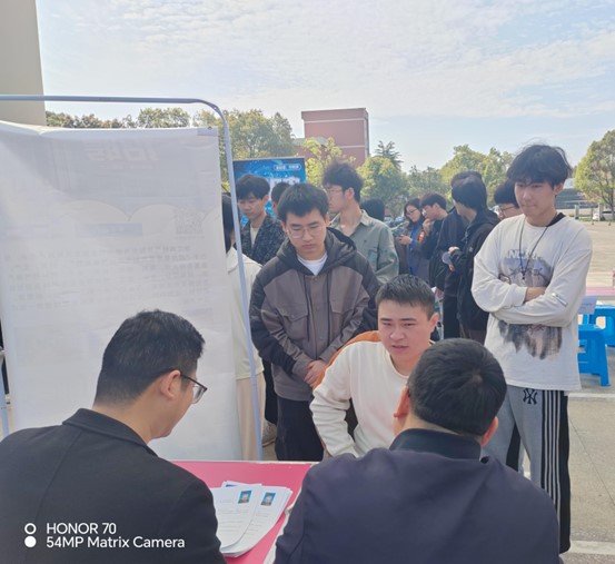 现场气氛热烈,组织工作井然有序。本次招聘会吸引了大量学生参与,毕业生们热情高涨,认真研读招聘信息、主动问询岗位情况、深入了解前景发展、筛选合适岗位、积极投递简历……各用人单位为前来应聘的同学们详细介绍企业情况、招聘需求、发展机会等,耐心解答同学们提出的各类问题。此外,大二、大三的同学们也踊跃参与此次招聘会,提前了解就业市场需求,更加清晰职业生涯规划。现场达成初步双选意向近150个。