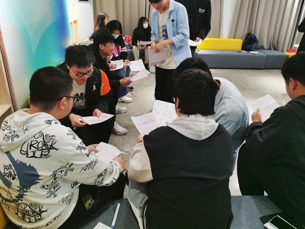 活动开始,林老师通过卡片抽签的形式将同学们随机分成两人一组,每个同学进行自我介绍,并描述手上卡片的内容及感受,活跃了现场氛围,增加了大家的参与积极性。接着,林老师带领大家做了一系列关于认识自我的现场活动,并与同学们进行了交流互动,向同学们科普了“乔哈里窗”的内涵以及运用方法。最后,活动以同学们的感悟和分享结束。最后,董书记对活动进行总结,称赞了同学们在活动中的积极探索和分享,希望同学们能将在此次活动中的学习所得内化于心、外化于行,自此开启自我的探索和改变之旅。