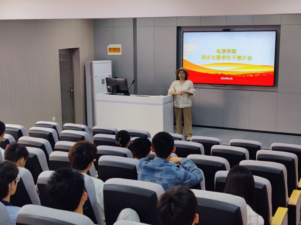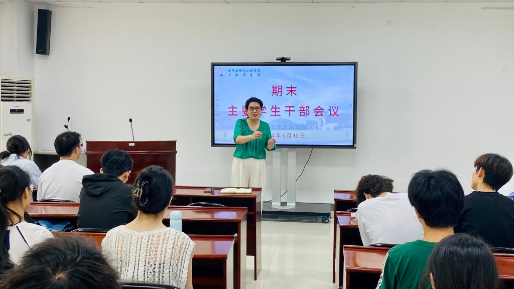 董立达作总结发言,她对大家一个学期的工作表现给予肯定。同时,她希望同学们一如既往支持学院的学生工作,继续发挥好“左膀右臂”的功能,严格落实网格化管理和异常上报反馈制度,做到快速反应、高效应对,发挥好学生干部的“前沿哨兵”作用。要求各班近期召开主题班会,做好会议精神传达,做好班级诚信和假期安全教育工作。
