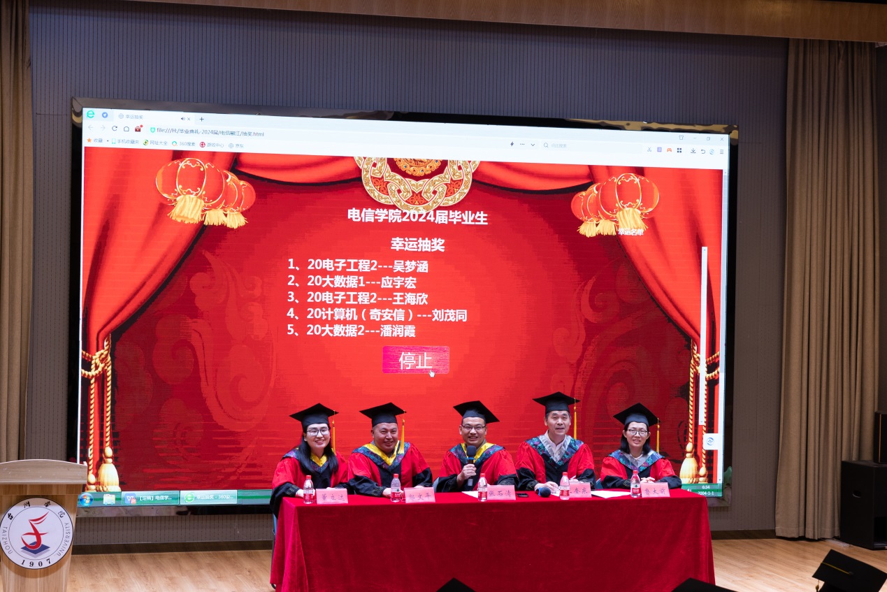 典礼尾声,学院院长抽取幸运毕业生,为毕业生颁发幸运奖品。