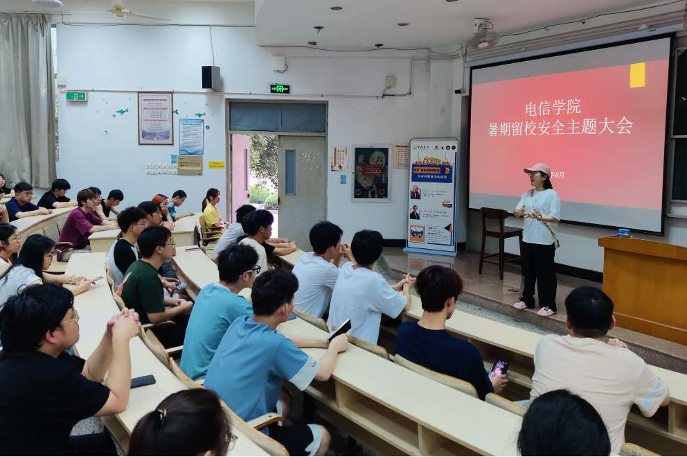 据悉,电信学院今年暑期共有近410名学生因学科竞赛、实习或考研复习等原因留校。通过此次大会,同学们对暑期留校安全问题的种类以及解决办法有了较为全面的了解,提高了安全防范意识,对留校期间的规划也更加清晰,同学们纷纷表示要端正态度、提高警惕,努力度过一个安全、有意义的暑假。