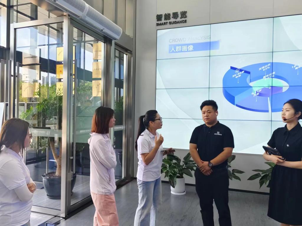 为了促进“数据科学和大数据技术”专业学生了解本专业在城市管理、决策以及智慧养老领域的应用现状,了解大数据专业在这些领域运用存在的阻碍和难题,培养具备较强社会责任感的新工科专业人才,7月6日,e路匠心·“大树聚”暑期社会实践队在辅导员王玲玲老师的带领下参观了“城市大脑”运营中心(数字馆)和葭沚街道智慧养老中心。