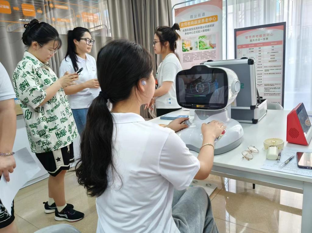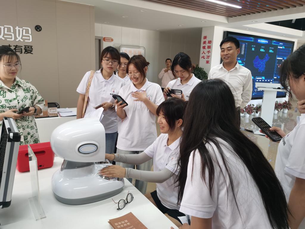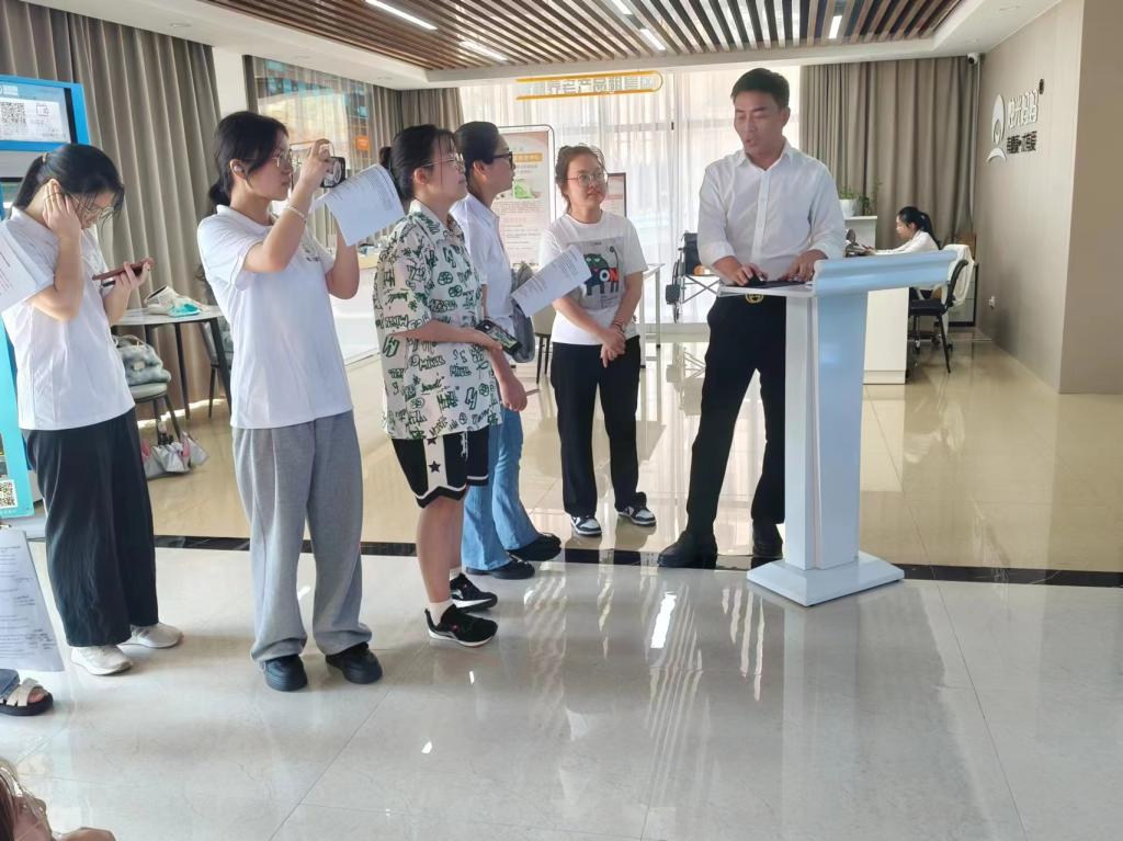 下午,实践队来到葭沚街道智慧养老中心,工作人员向同学们介绍了目前该中心正在使用的智慧养老设备以及在线系统。同学们看到了密密麻麻的网状数据分布图,在大数据的支撑下,智慧养老几乎得以实现全方位、一站式服务。工作人员还向同学们介绍了当前椒江区区域内智慧养老的线下服务点、各项养老服务的实现路径和当前该智慧养老中心的建设方向。最后,双方还就校地合作、完善服务系统、引进志愿服务等达成合作意向。