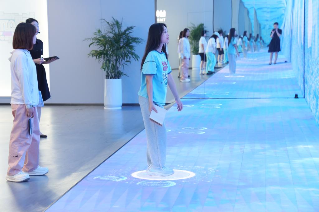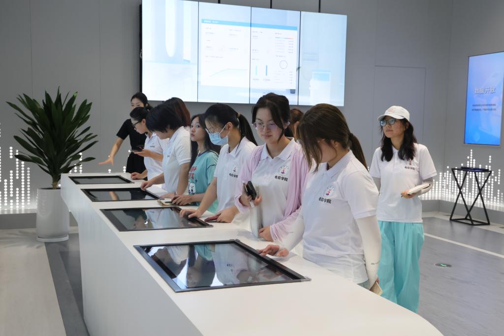 上午,穿越翻涌着数字化浪潮的梦幻走廊,同学们在展示数字化在市政管理中年代演变的沙盘前驻足。同学们被“工业4.0城市”、“城管智联”、“安讯应急”、“政企共建、蓝色循环”、“教育直通车”、“数字三农”、“工业互联网”等内容深深吸引着,听着讲解员的介绍,同学们思考着、感叹着、想象着。同学们还就参观过程中遇到的疑惑和问题,向数字馆的工作人员进行了咨询和访谈,工作人员进行了耐心解答。