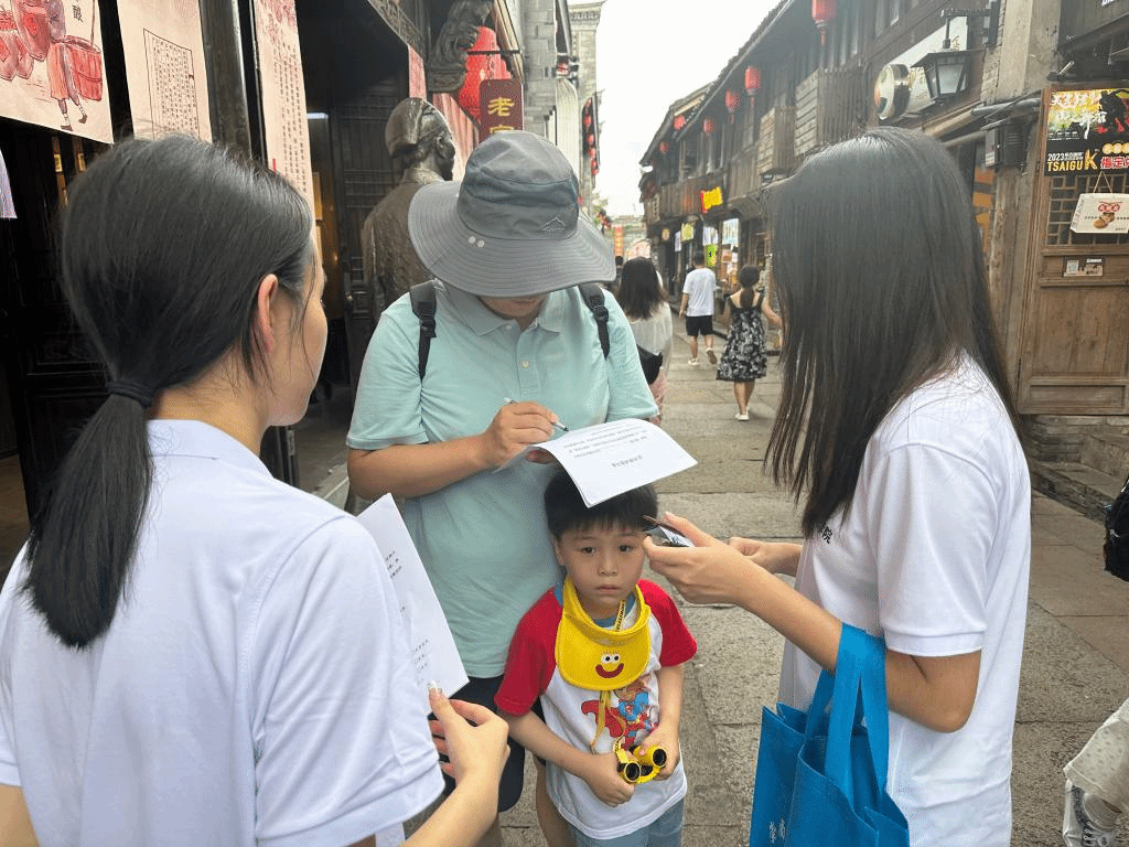 下午,实践队成员到台州府城景区步行街以点对点地推方式进一步了解群众对于邪教组织的认知程度,将反邪知识送到群众身边。