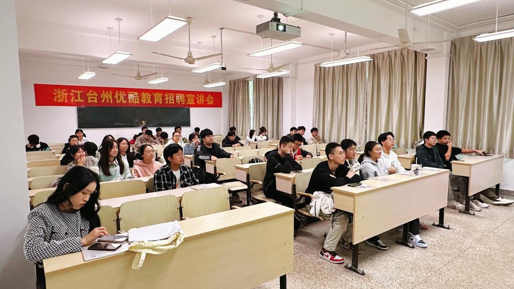 为进一步拓宽毕业生就业渠道、明确就业目标、提升就业质量。11月21日下午,电信学院举办“e职为你”第6期活动,邀请浙江台州优酷教育公司来校召开宣讲会。宣讲会由就业辅导员耿秉凡主持,企业HR及2025届毕业生参加。
