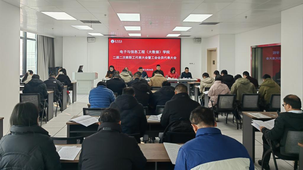 12月27日下午,电子与信息工程(大数据)学院二届二次教职工代表大会暨工会会员代表大会在科技综合楼7楼顺利召开,学院党政领导、41名正式代表出席会议,学院党委书记王奎东、副书记董立达分别主持会议。