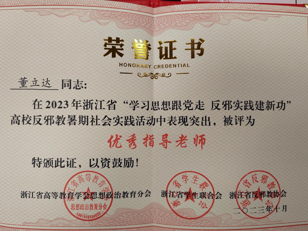 指导老师获省优秀指导老师