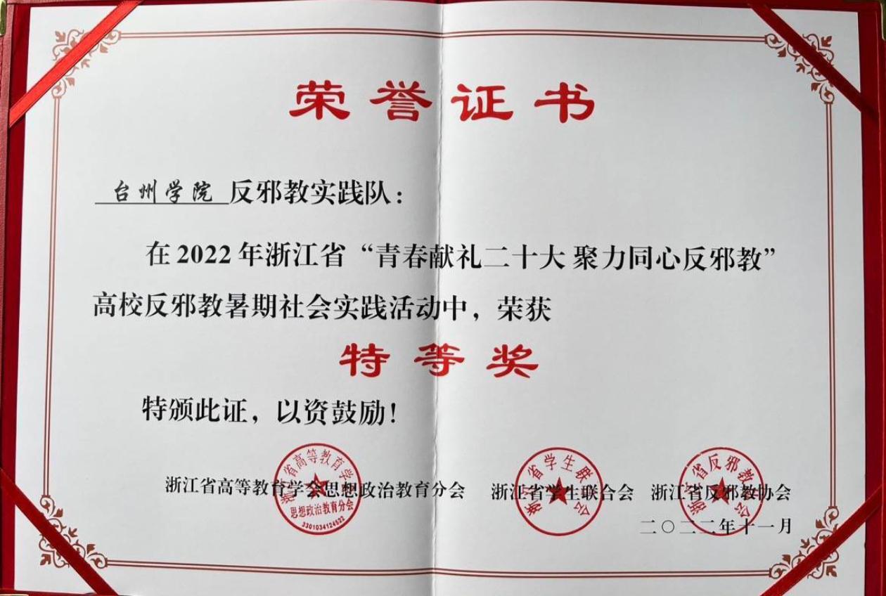 台州学院反邪教实践队获浙江省特等奖