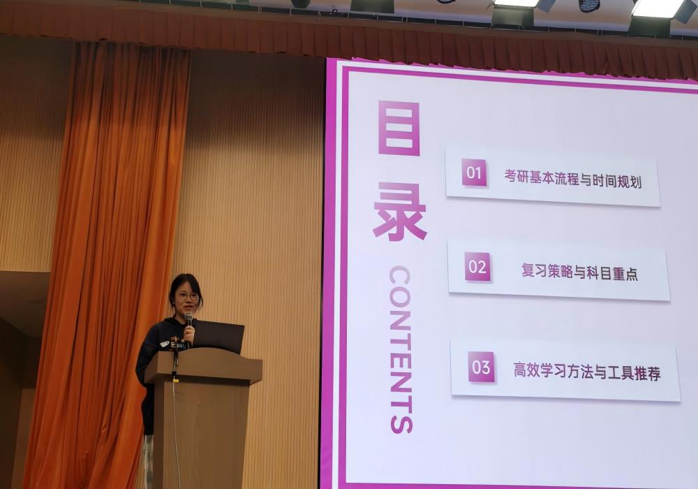 大会第一阶段,学院领导宣读表彰名单并讲话。他们对录取学生表示衷心的祝贺,这份成功的背后是挑灯夜战的坚持,是屡败屡战的勇气,更是对梦想的执着坚守。希望广大学生要以受表彰同学为榜样,锐意进取,笃行不怠。学习他们在困境中迎难而上的魄力,效仿他们在挫折中重整旗鼓的决心,将考研学子的拼搏精神融入到日常学习中随后,与会老师为在2025年考研中取得优异成绩的考研学生代表颁发奖励。