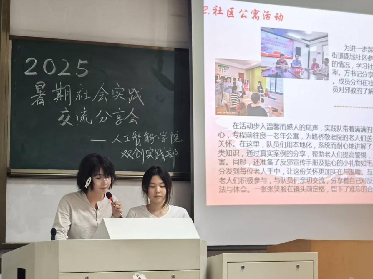本次暑期社会实践交流会内容涵盖范围广,为2025级新生提供了宝贵的社会实践指引,充分展现了人工智能学院学子知行合一、服务社会的精神风貌。进一步鼓励了人工智能学子积极投身于社会实践活动,把爱国情、强国志、报国行自觉融入新时代追梦征程,为实现中华民族伟大复兴的中国梦贡献青春力量。