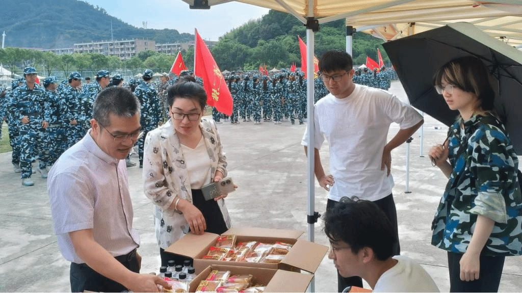 在椒江校区训练场,学院党委书记曹仁海、副书记董立达亲临现场,将饱含情谊的中秋月饼送至新生手中。临海校区则为同学们准备了清甜可口的西瓜,在炎炎训练日中为大家送去一份清凉与甘甜。